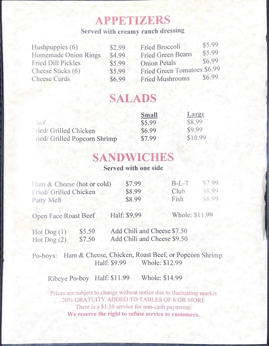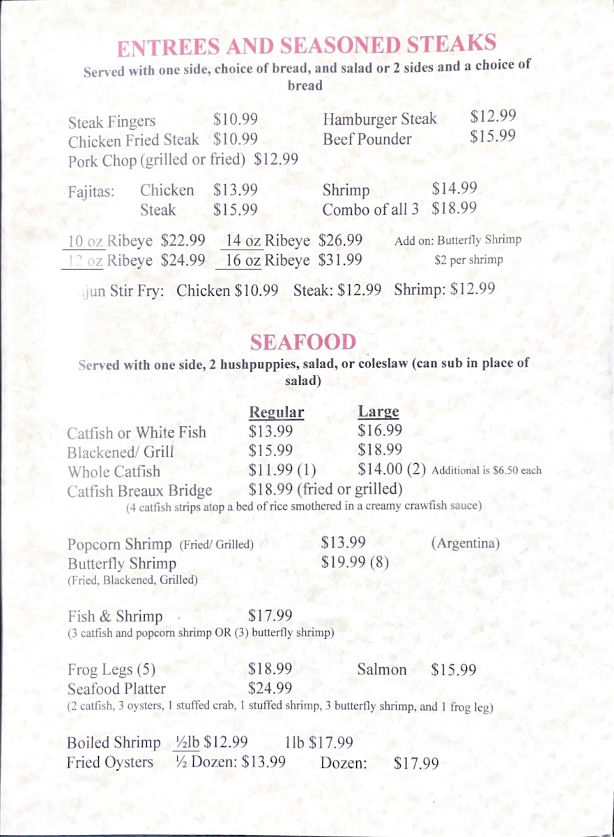 Welcome to Honey's Restaurant, a hidden gem nestled in Mangham, LA. Located at 114 Broadway St, this family-friendly establishment has carved a niche for itself with its commitment to fresh, homemade meals. Patrons rave about the **amazing steak** and **onion pedals**, a standout dish that consistently garners high praise. Dishes like the **grilled white fish** served with loaded potato salad and hush puppies capture the essence of freshness and flavor, while their fish and shrimp plates are noted for their swift service without compromising quality.